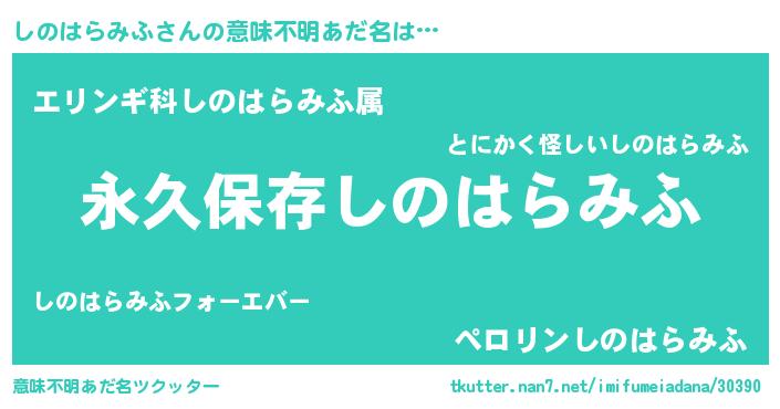 | ヒーロー風カッコイイあだ名 | 『ネオシノハラミフ』『暗黒騎士シノ』 |