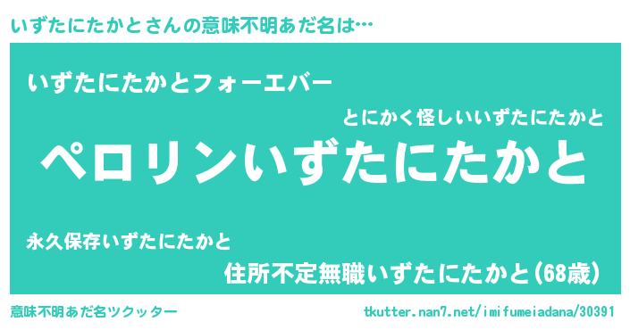 | 男性向けラノベタイトル風あだ名 | 『うちのいずたにたかとが世界を掌握している!』 |