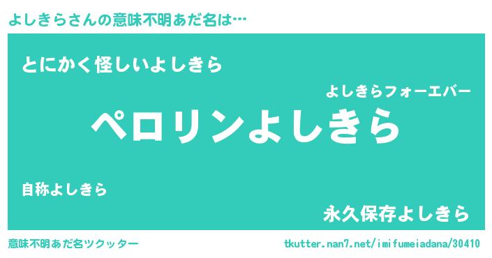 | 男性向けラノベタイトル風あだ名 | 『よしきらの憂鬱』『緋弾のヨシキラ』 |