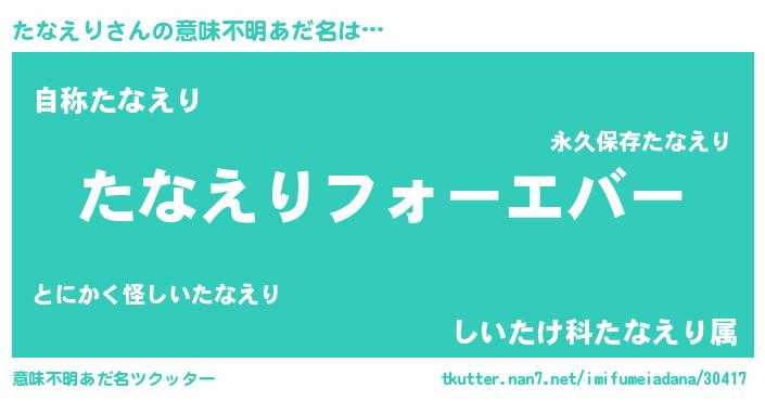 | ファンタジー風あだ名 | 『エターナルタナエリー』『ゼタナトゥ』 |