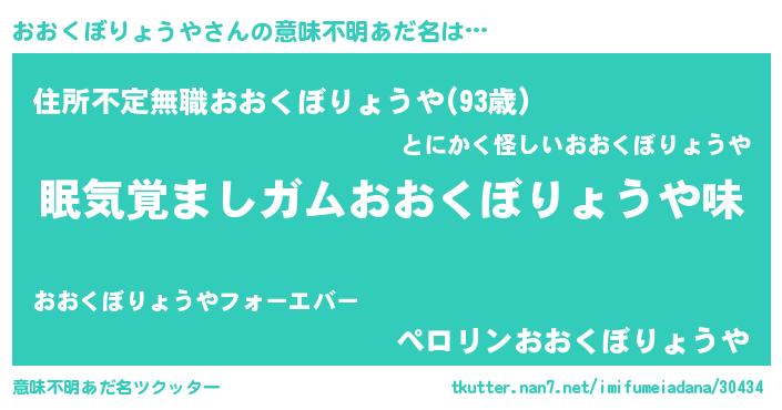 | 男性向けラノベタイトル風あだ名 | 『ノーゲーム・ノーオオクボリョウヤ』 |
