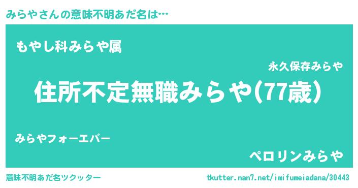 | ヘコむあだ名 | 『みらもー』『みらや(小並感)』 |