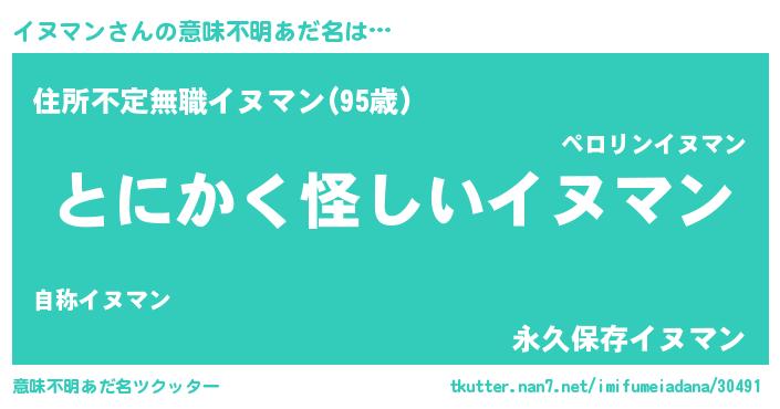 | 欧米人風あだ名 | 『ウサインイヌマン』『マイケルイヌマン』 |