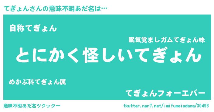 | 男性向けラノベタイトル風あだ名 | 『ダンジョンにてぎょんを求めるのは間違っているだろうか』 |