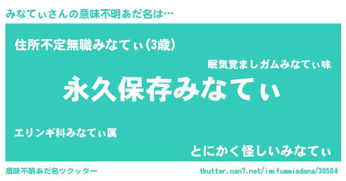 | 伝説のあだ名 | 『古文書に記された勇者みなてぃ』 |