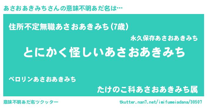 | 女子向けラノベタイトル風あだ名 | 『あさおあきみちは平凡を望む』 |