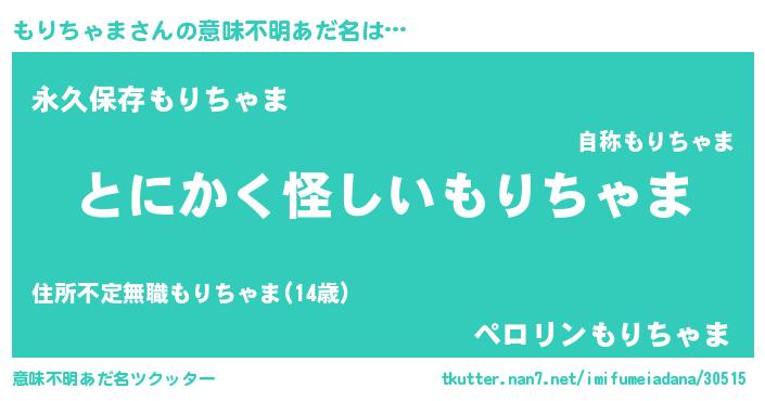 | ヒーロー風カッコイイあだ名 | 『天弓騎士モリ』『ネオモリチャマ』 |