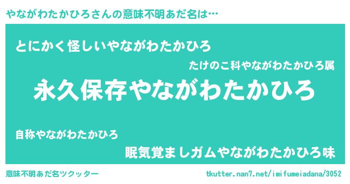 | ヘコむあだ名 | 『やながわたかひろ(笑)』『やなぷりん』 |