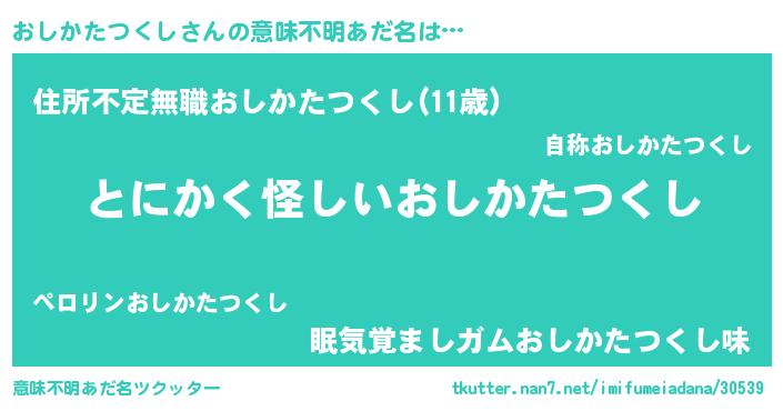| 胡散臭い通販商品みたいなあだ名 | 『信頼と実績のペンダント…その名も「おしかたつくし」』 |