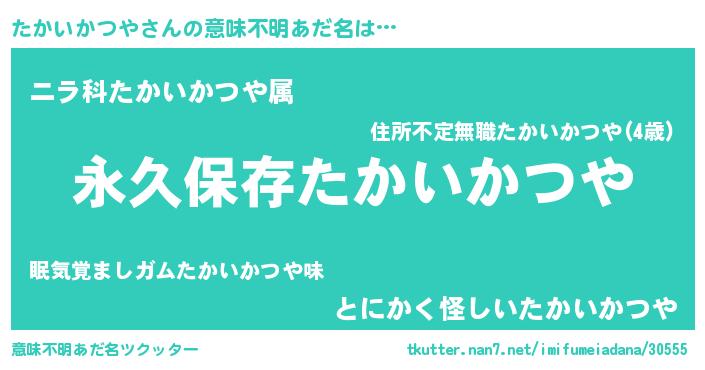 | 男性向けラノベタイトル風あだ名 | 『たかいかつやという概念が存在しない退屈な世界 』 |