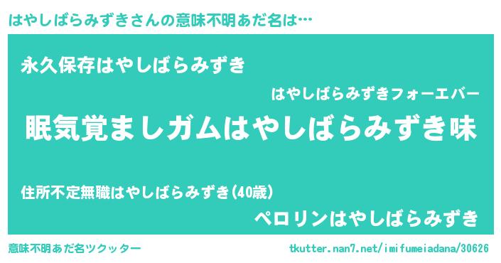 | ヘコむあだ名 | 『はやしばらみずき(笑)』『はやにー』 |