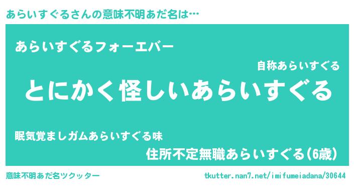| 胡散臭い通販商品みたいなあだ名 | 『信頼と実績のペンダント…その名も「あらいすぐる」』 |