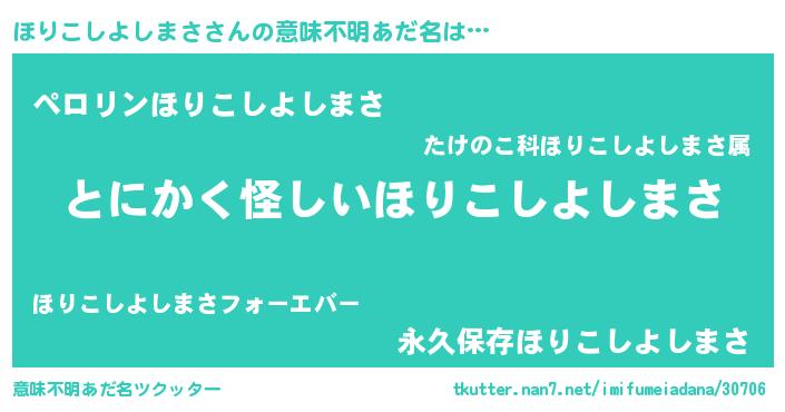 | 女子向けラノベタイトル風あだ名 | 『ほりこしよしまさの卵を拾いまして』 |