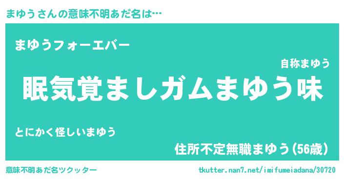 | ヒーロー風カッコイイあだ名 | 『天空の使者まゆう』『仮面マユダー』 |