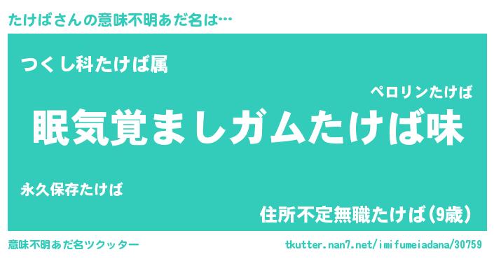 | 男性向けラノベタイトル風あだ名 | 『ノーゲーム・ノータケバ』 |