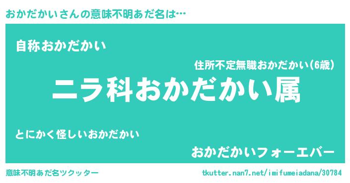 | 男性向けラノベタイトル風あだ名 | 『おかだかい~年齢イコール彼女いない歴の魔法使い~』 |