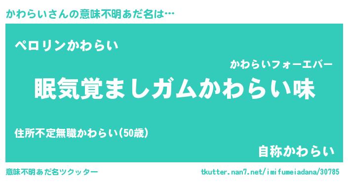 | 女子向けラノベタイトル風あだ名 | 『死神かわらいの再婚』『闇のかわらい』 |