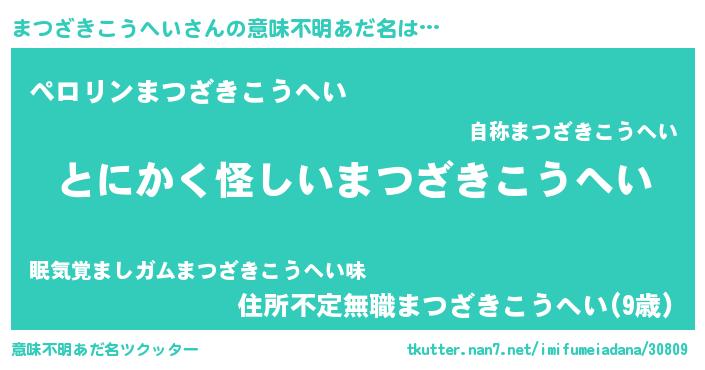 | 男性向けラノベタイトル風あだ名 | 『まつざきこうへいの嫁は女の子じゃないと思った?』 |