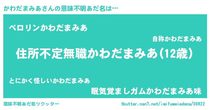 | ヒーロー風カッコイイあだ名 | 『仮面カワダー』『スーパーカワダマミア』 |