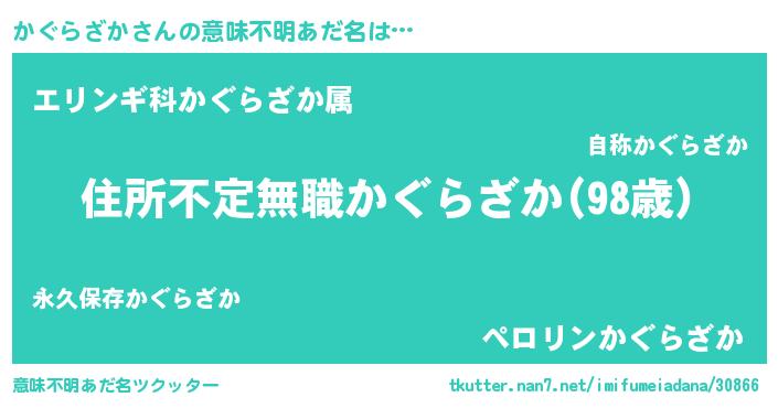 | 男性向けラノベタイトル風あだ名 | 『この素晴らしい世界にかぐらざかを!』 |