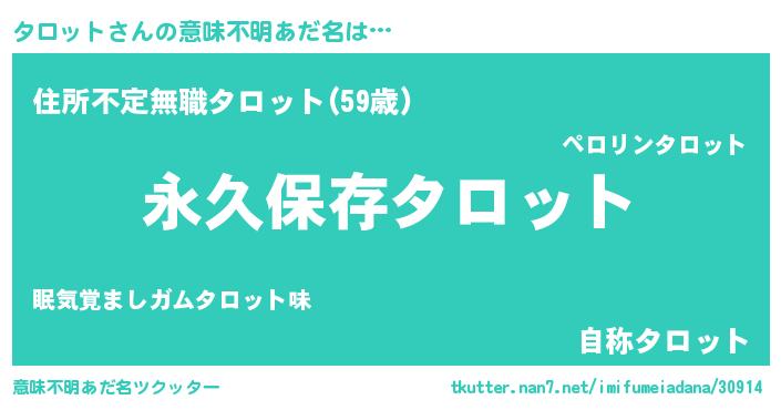 | 男性向けラノベタイトル風あだ名 | 『タロットという概念が存在しない退屈な世界 』 |