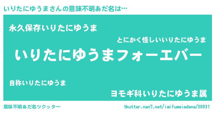 | 欧米人風あだ名 | 『いりたにゆうまクリステル』 |