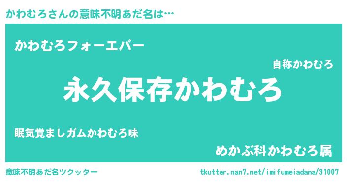 | 女子向けラノベタイトル風あだ名 | 『異世界で失敗しない100のかわむろ』 |