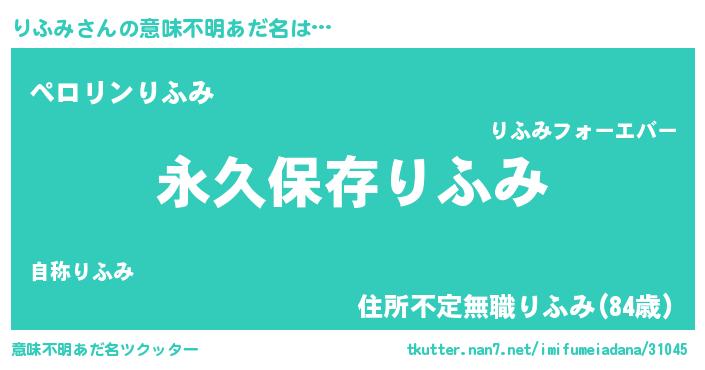 | 男性向けラノベタイトル風あだ名 | 『りふみという概念が存在しない退屈な世界 』 |