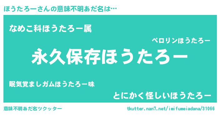 | 男性向けラノベタイトル風あだ名 | 『ほうたろーという概念が存在しない退屈な世界 』 |