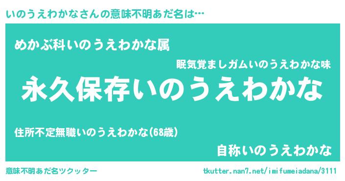 | 胡散臭い通販商品みたいなあだ名 | 『来世でも幸せになれる健康食品…その名も「いのうえわかな」』 |