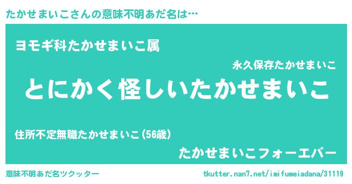 | ポケモン風あだ名 | 『ヒタカセマイコ』『タカキング』 |