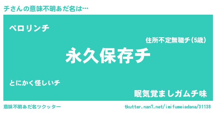 | 男性向けラノベタイトル風あだ名 | 『チという概念が存在しない退屈な世界 』 |