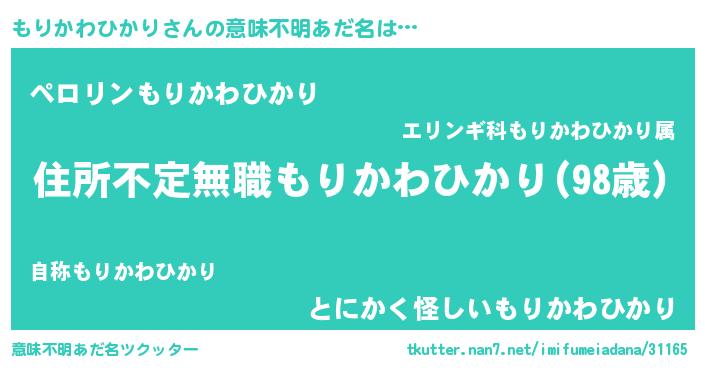 | 恥ずかしいあだ名 | 『プリティーもりかわひかり』『もりちん』 |