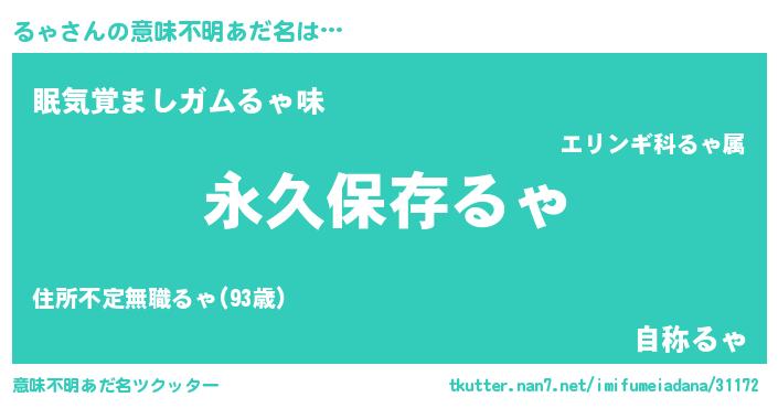 | 男性向けラノベタイトル風あだ名 | 『るゃという概念が存在しない退屈な世界 』 |
