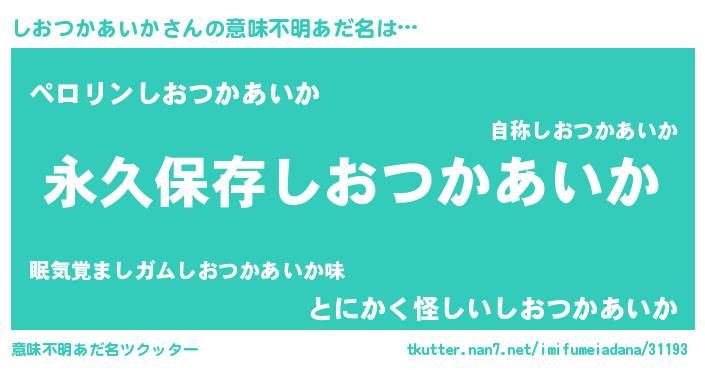 | 男性向けラノベタイトル風あだ名 | 『しおつかあいかという概念が存在しない退屈な世界 』 |