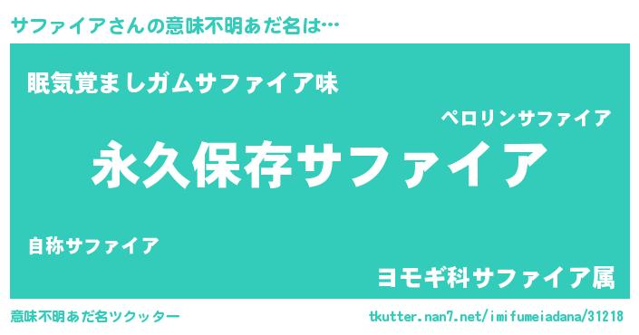 | 男性向けラノベタイトル風あだ名 | 『サファイアという概念が存在しない退屈な世界 』 |