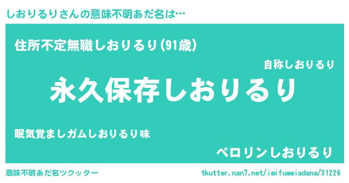 | 胡散臭い通販商品みたいなあだ名 | 『絶対に幸福をもたらす水素水…その名も「しおりるり」』 |