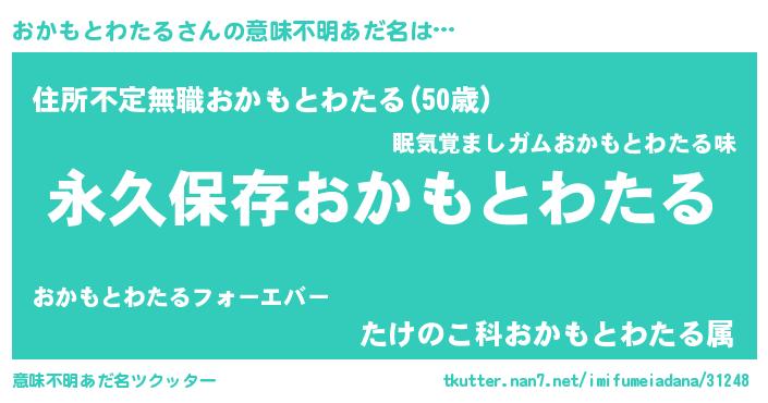 | 男性向けラノベタイトル風あだ名 | 『おかもとわたるという概念が存在しない退屈な世界 』 |