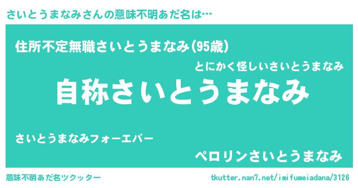 | 男性向けラノベタイトル風あだ名 | 『Re:さいとうまなみから始める異世界生活』 |