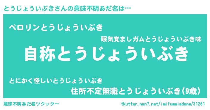 | 欧米人風あだ名 | 『とうじょういぶき・ステッグマイヤー』 |