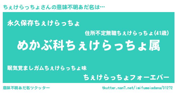 | 料理風あだ名 | 『ちぇけらっちょごはん』 |