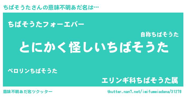 | 男性向けラノベタイトル風あだ名 | 『ちばそうたの嫁は女の子じゃないと思った?』 |