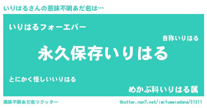 | ヒーロー風カッコイイあだ名 | 『ネオイリハル』『ウルトラいりはるマン』 |