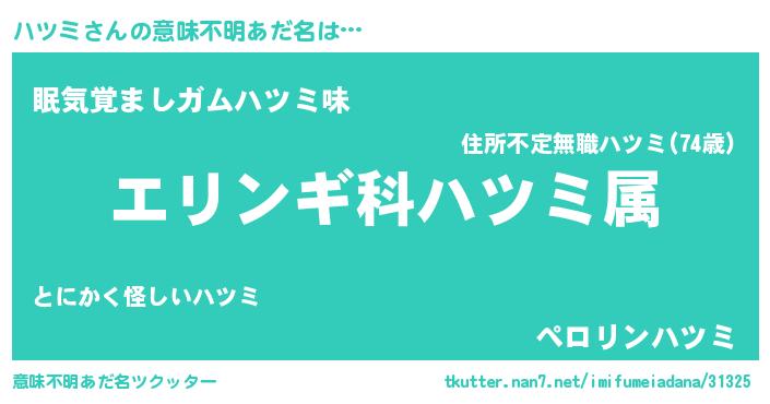 | 欧米人風あだ名 | 『アンジェラ・ハツミ』『ダニエルハツミ』 |