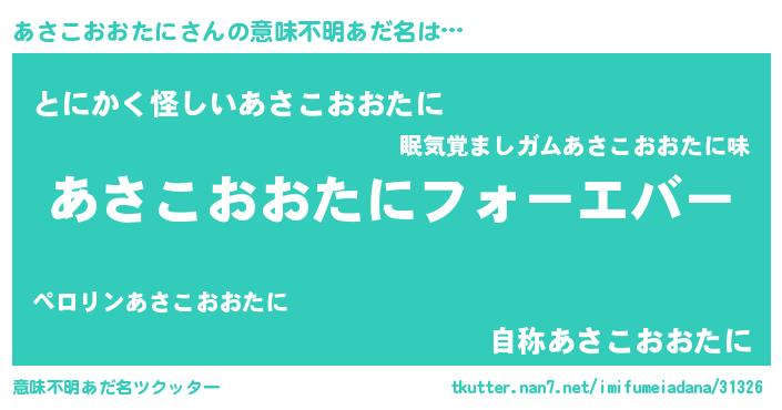 | 男性向けラノベタイトル風あだ名 | 『やはりあさこおおたにの青春ラブコメはまちがっている 』 |