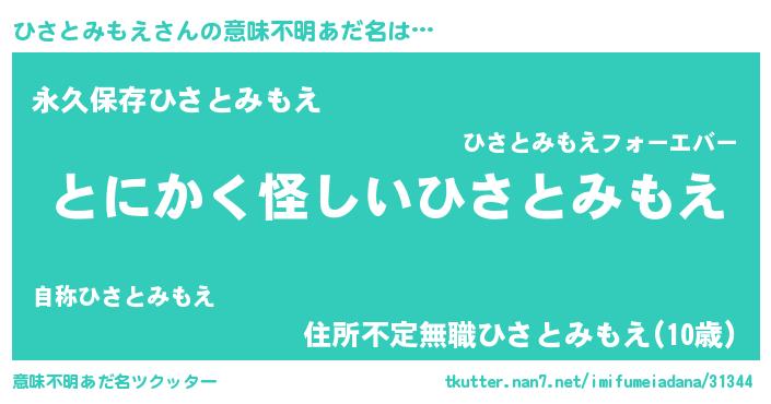 | ポケモン風あだ名 | 『メロヒッサ』『ヒヒサトミモエ』 |