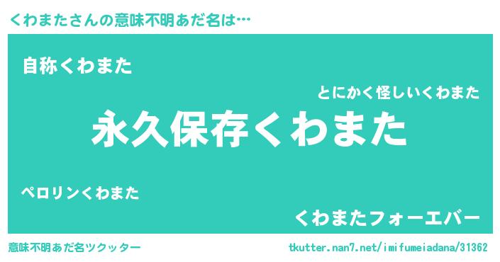 | 女子向けラノベタイトル風あだ名 | 『くわまたの契約王妃』 |