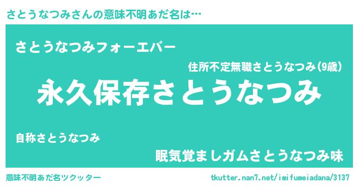 | 男性向けラノベタイトル風あだ名 | 『さとうなつみという概念が存在しない退屈な世界 』 |