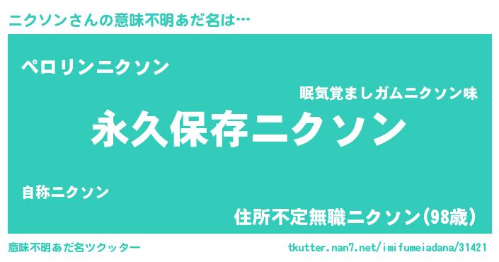 | 胡散臭い通販商品みたいなあだ名 | 『絶対に幸福をもたらす水素水…その名も「ニクソン」』 |