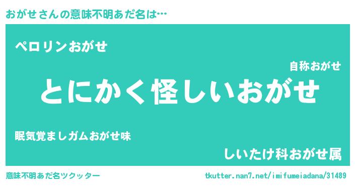 | 男性向けラノベタイトル風あだ名 | 『うちのおがせが世界を掌握している!』 |